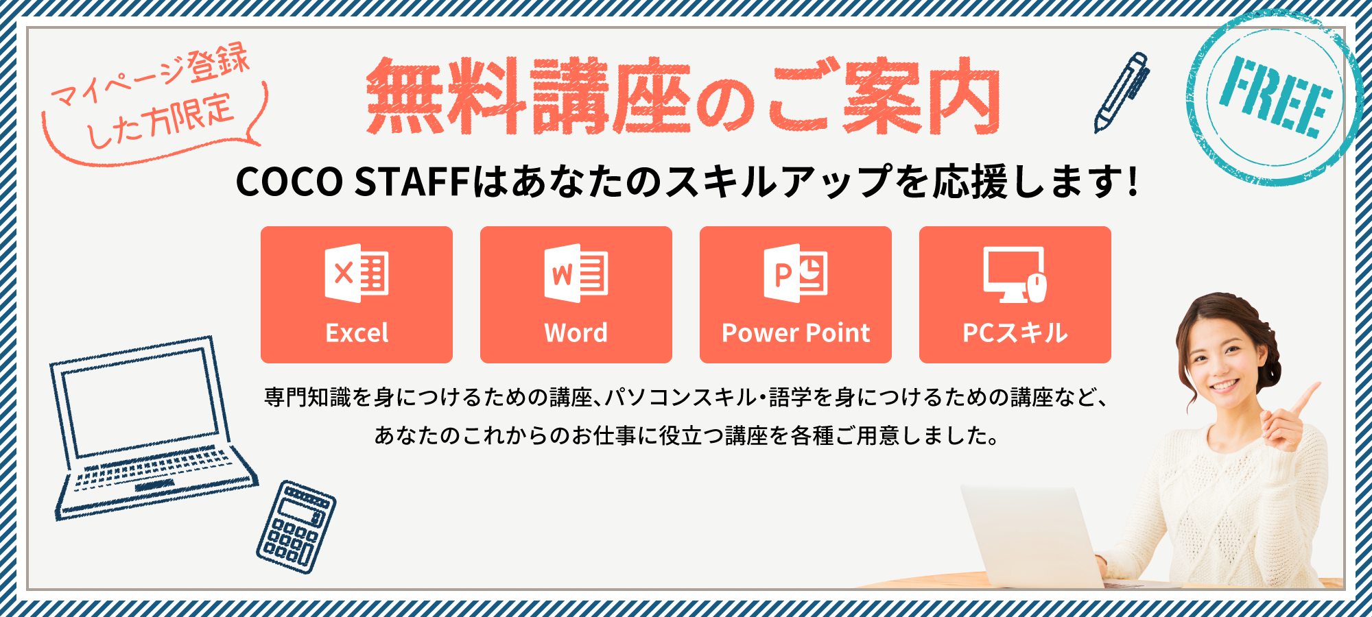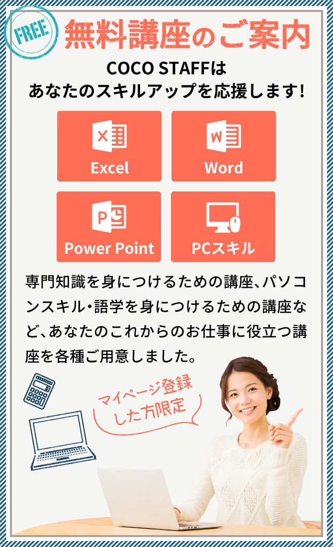 COCO STAFFでは、様々な研修やセミナーをご用意しております。あなたのスキルアップを全力サポートします。